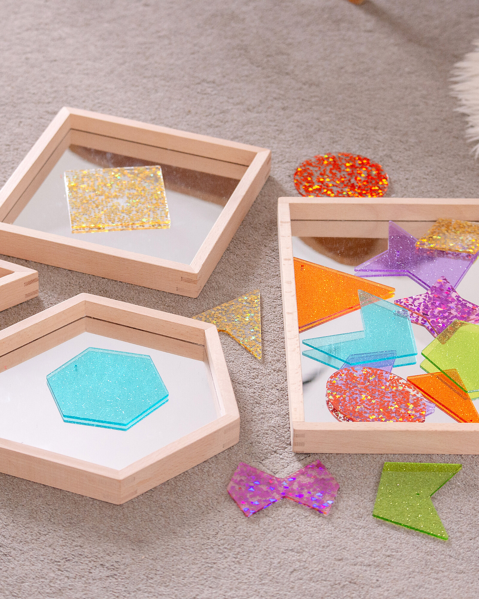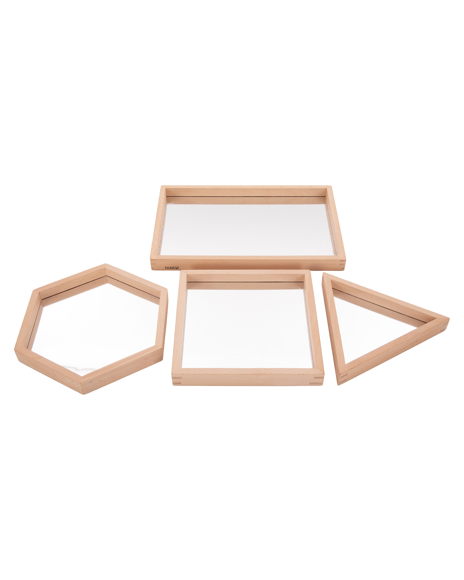 Vassoi a Specchio in Legno di Faggio - 4 Pezzi - Forme Geometriche - 0+
