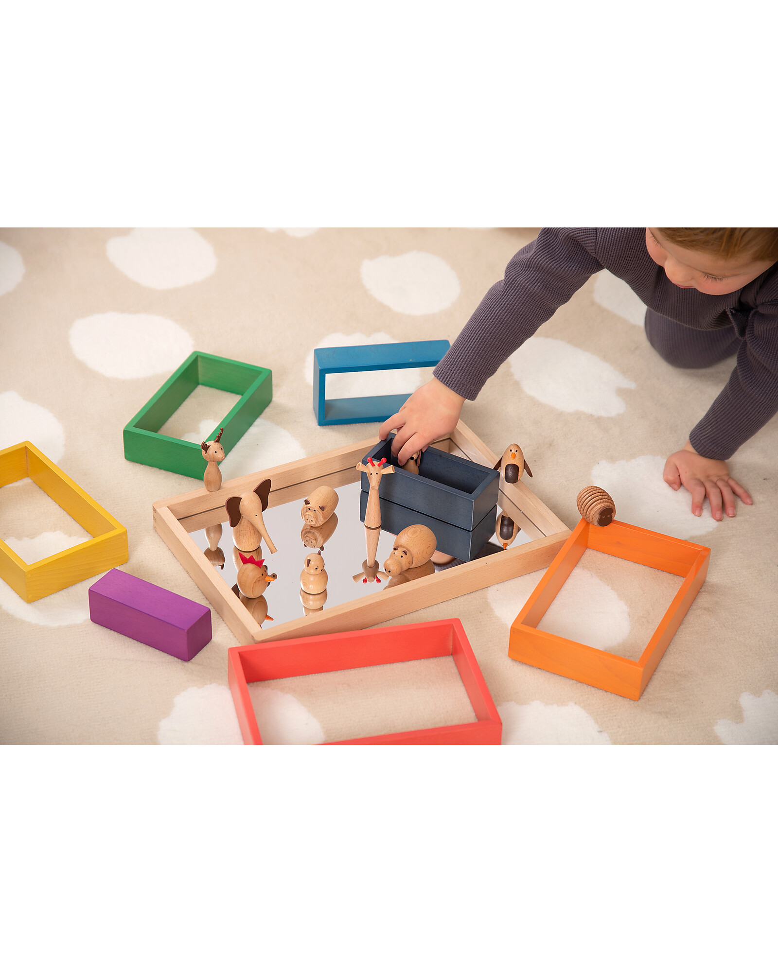 Il vassoio specchio in legno del marchio inglese TickIT è un gioco per bambini divertente ed interessante che consentirà loro di esplorare i propri tesori ed affascinarsi sfruttando le proprietà riflettenti dello specchio: usa il vassoio per esaminare gli oggetti e tra un gioco e l’altro di luce e riflessi il divertimento diventerà illimitato! Lo specchio potrà essere usato anche da solo per esplorare il proprio riflesso e sperimentare espressioni facciali date dalle emozioni o dal linguaggio. Una risorsa utile dalle grandi opportunità di utilizzo, realizzata in legno di faggio naturale. Un brand che racconta di divertimento ed apprendimento, riconosciuto e stimato da scuole, educatori ed apprezzato in guide, premi e riviste dedicati all’infanzia.