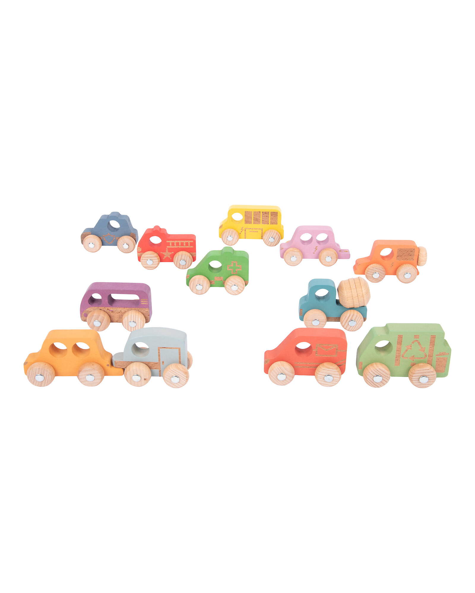 Veicoli in Legno di Faggio FSC - Arcobaleno - 12 Pezzi - 12m+