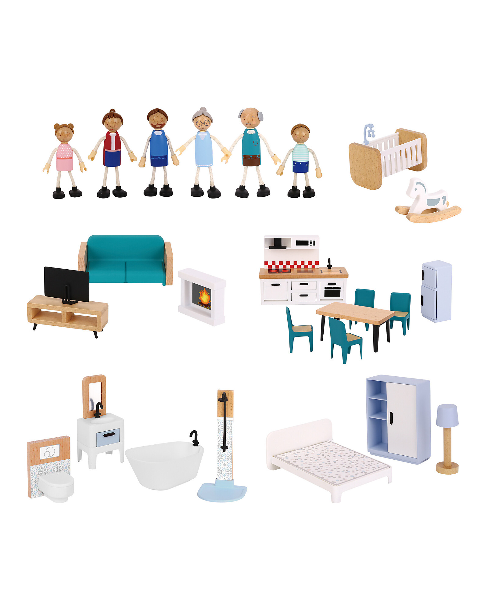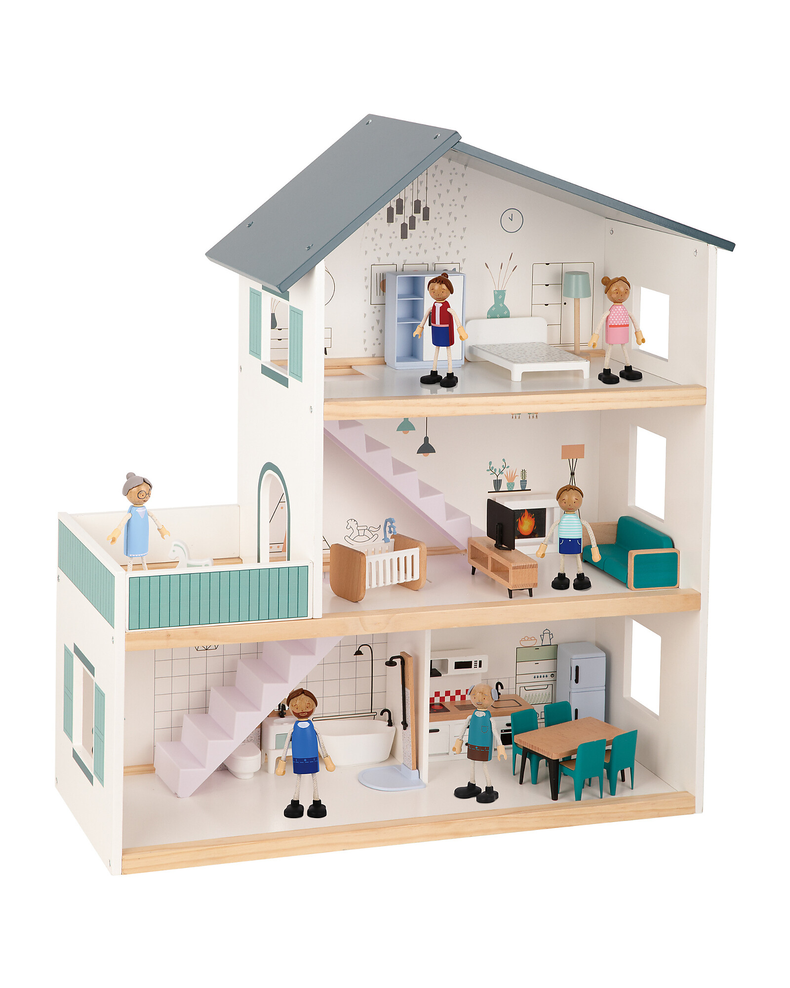 Casa delle Bambole in Legno - 31 Pezzi - 63 x 22,5 x 69,8 cm - 3+ Anni
