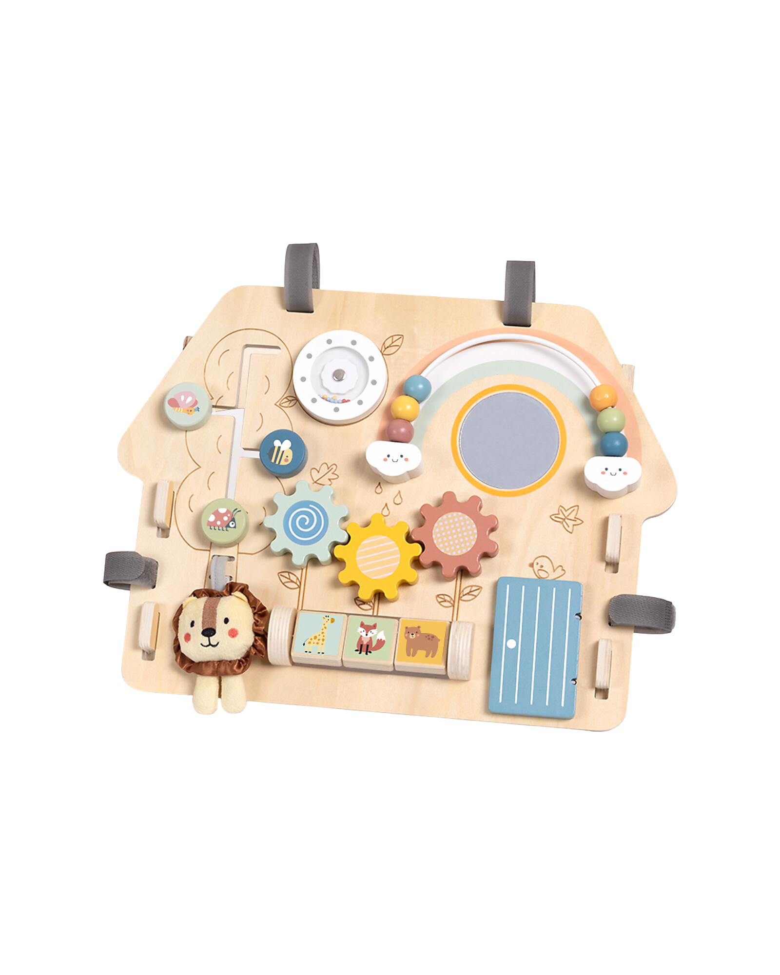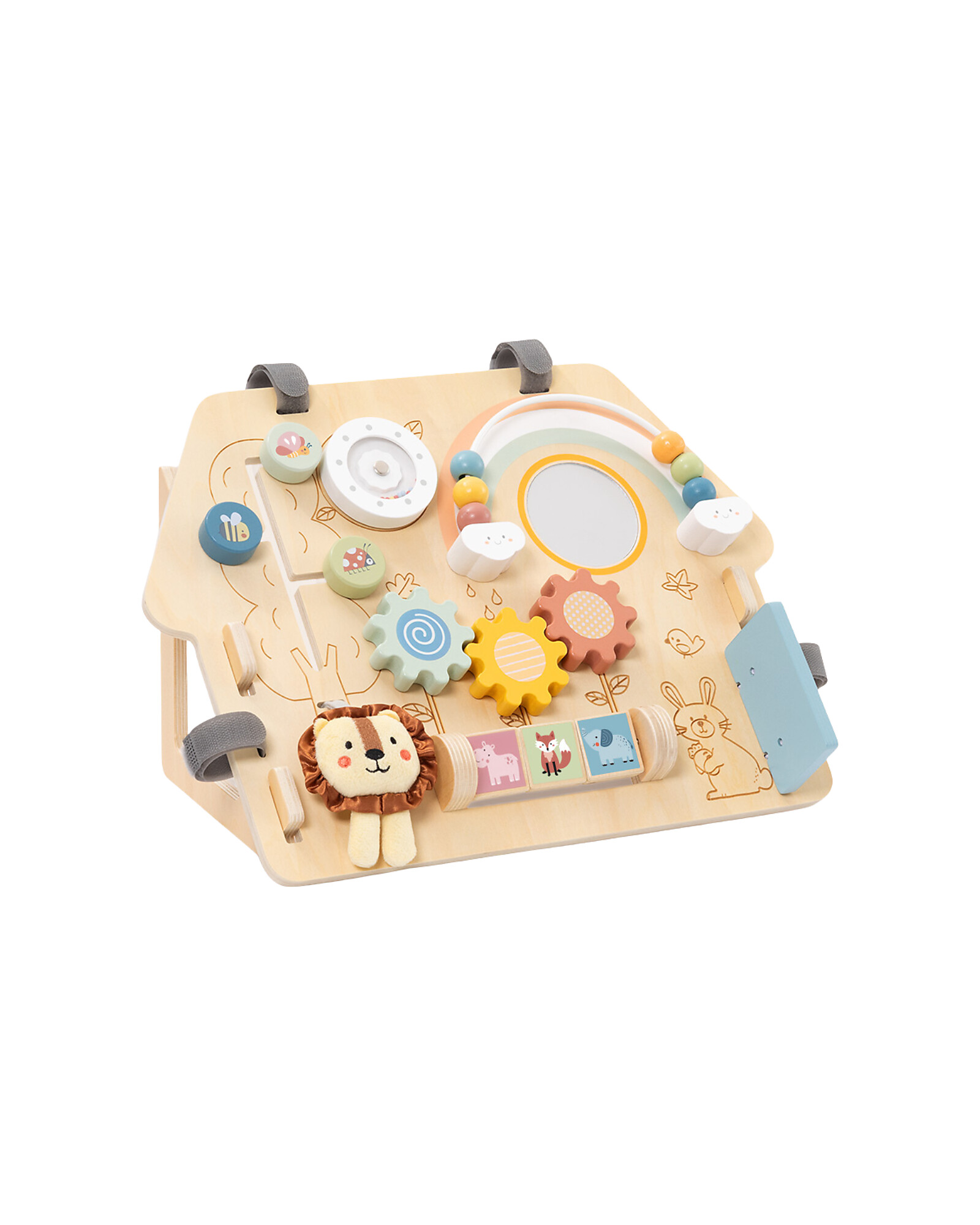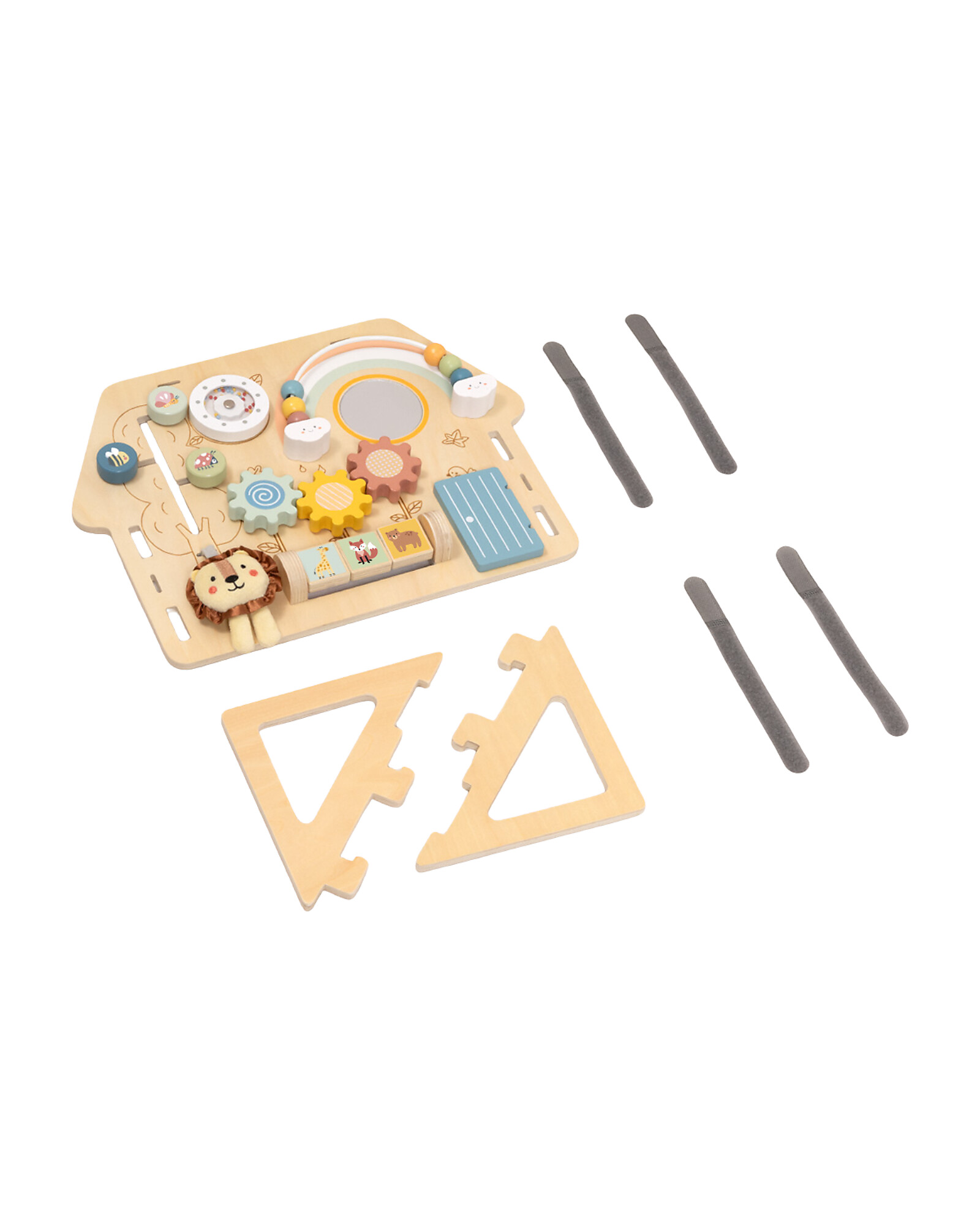 Impara ogni giorno con un nuovo gioco! Questo Pannello Multiattività in Legno Reclinabile è perfetto per i bambini da 12 mesi: con diverse attività integrate come ruote girevoli, porte e interruttori, ogni angolo nasconde una nuova sfida educativa. La struttura reclinabile in compensato e legno di ginepro è sicura e stabile. Il design colorato stimola la curiosità e la manualità fine. Un giocattolo montessoriano, perfetto per sviluppare l’autonomia!