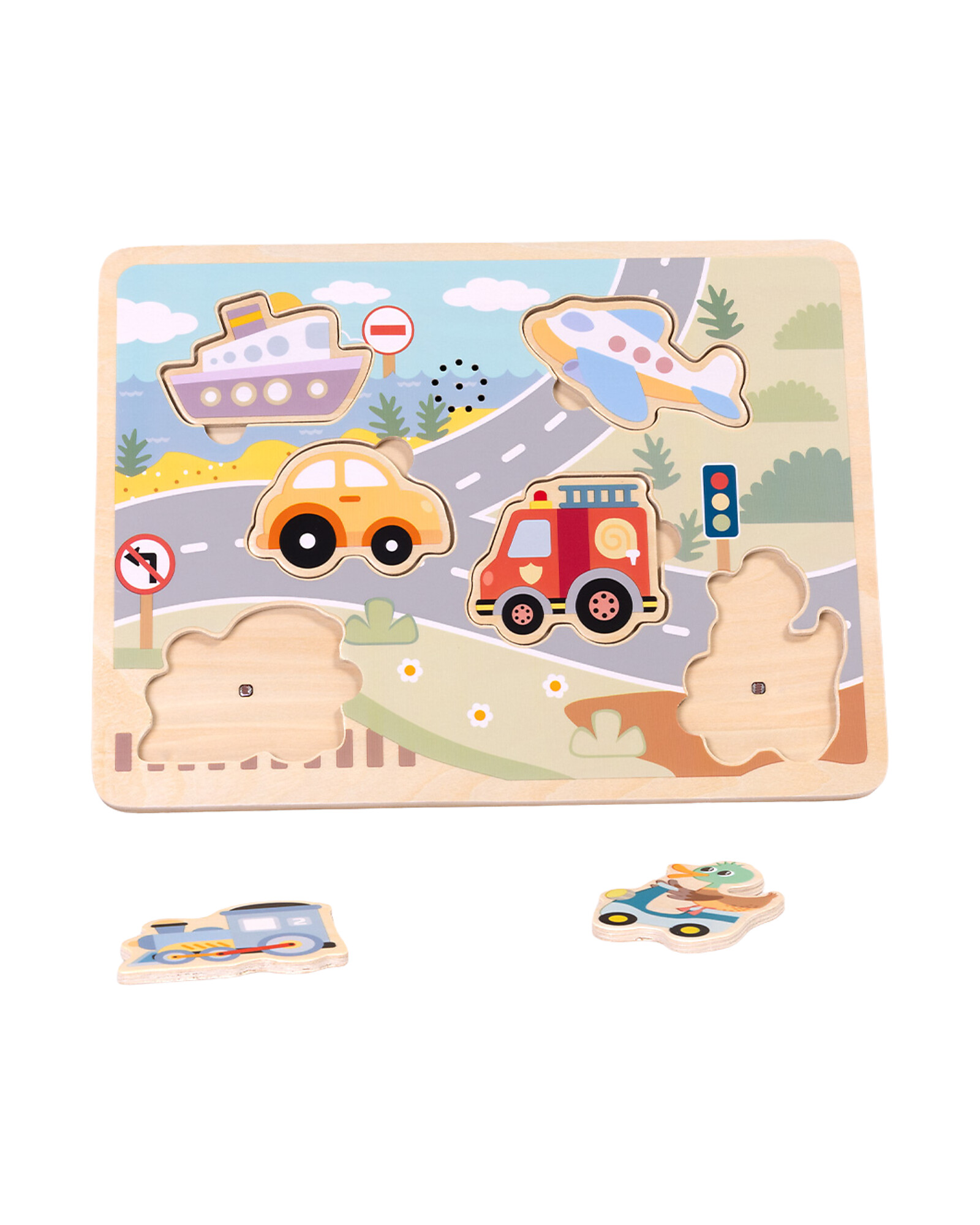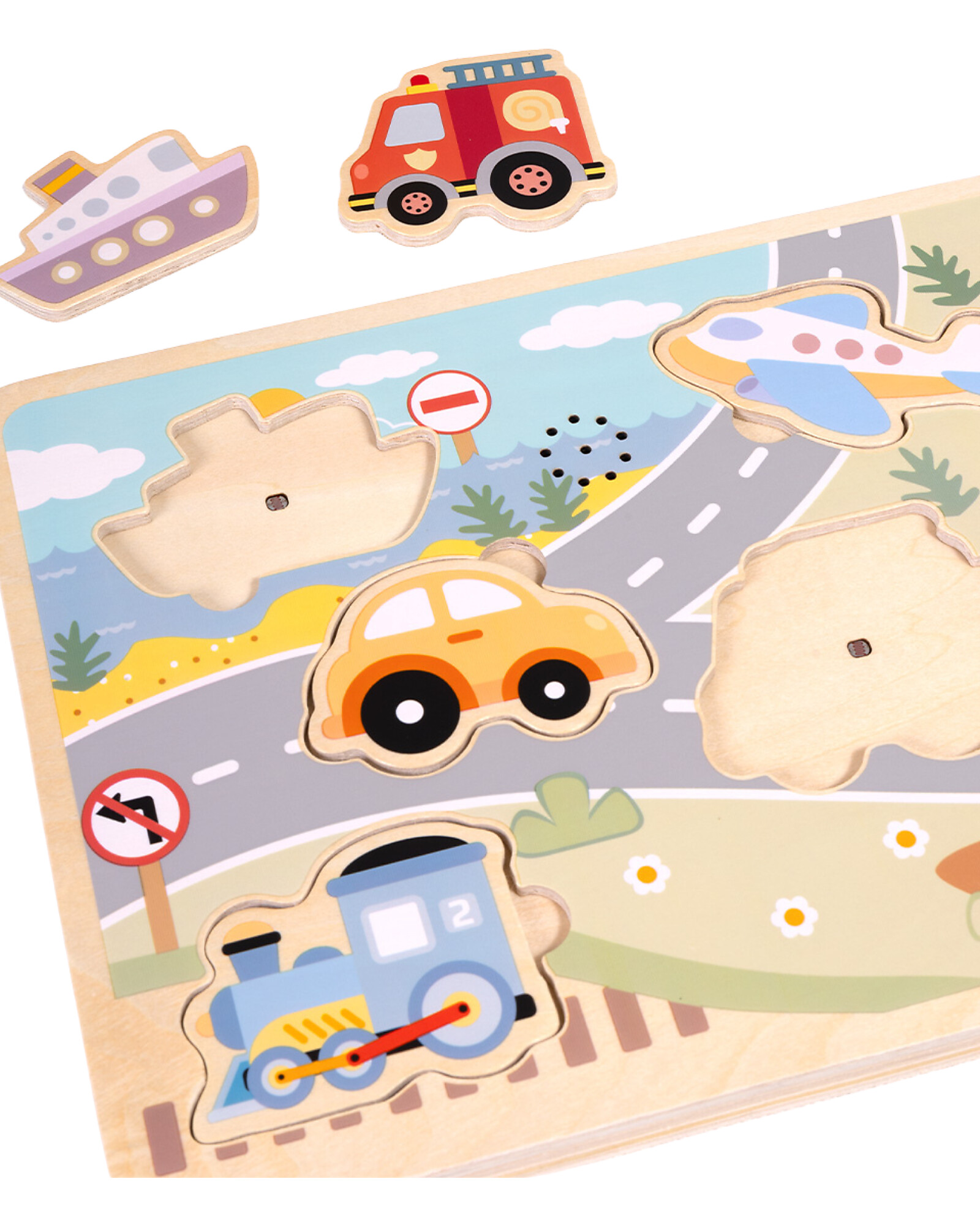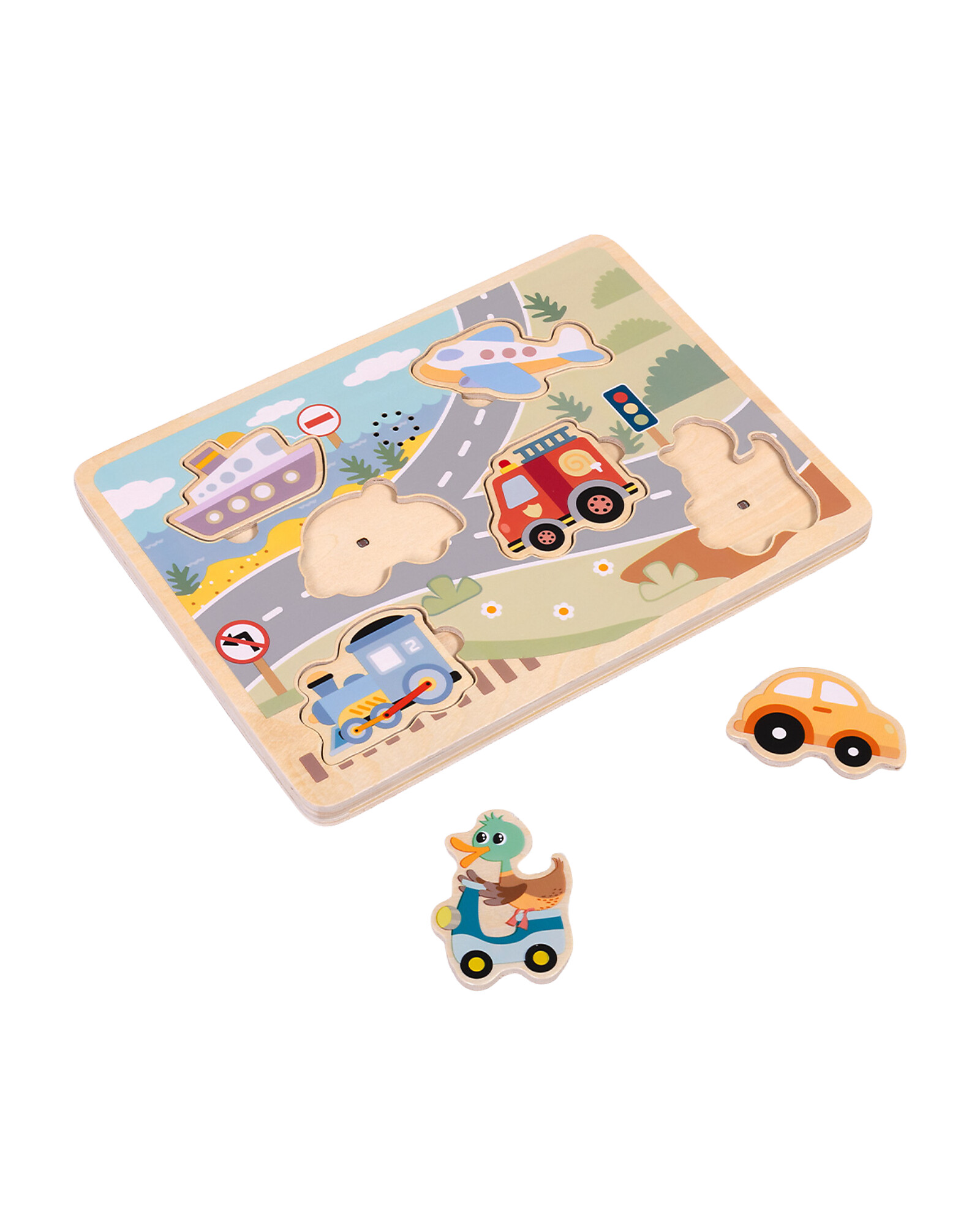 Puzzle Sonoro a Incastro in Legno - Veicoli - 29,5 x 21,5 x 1,5 cm - 18m+