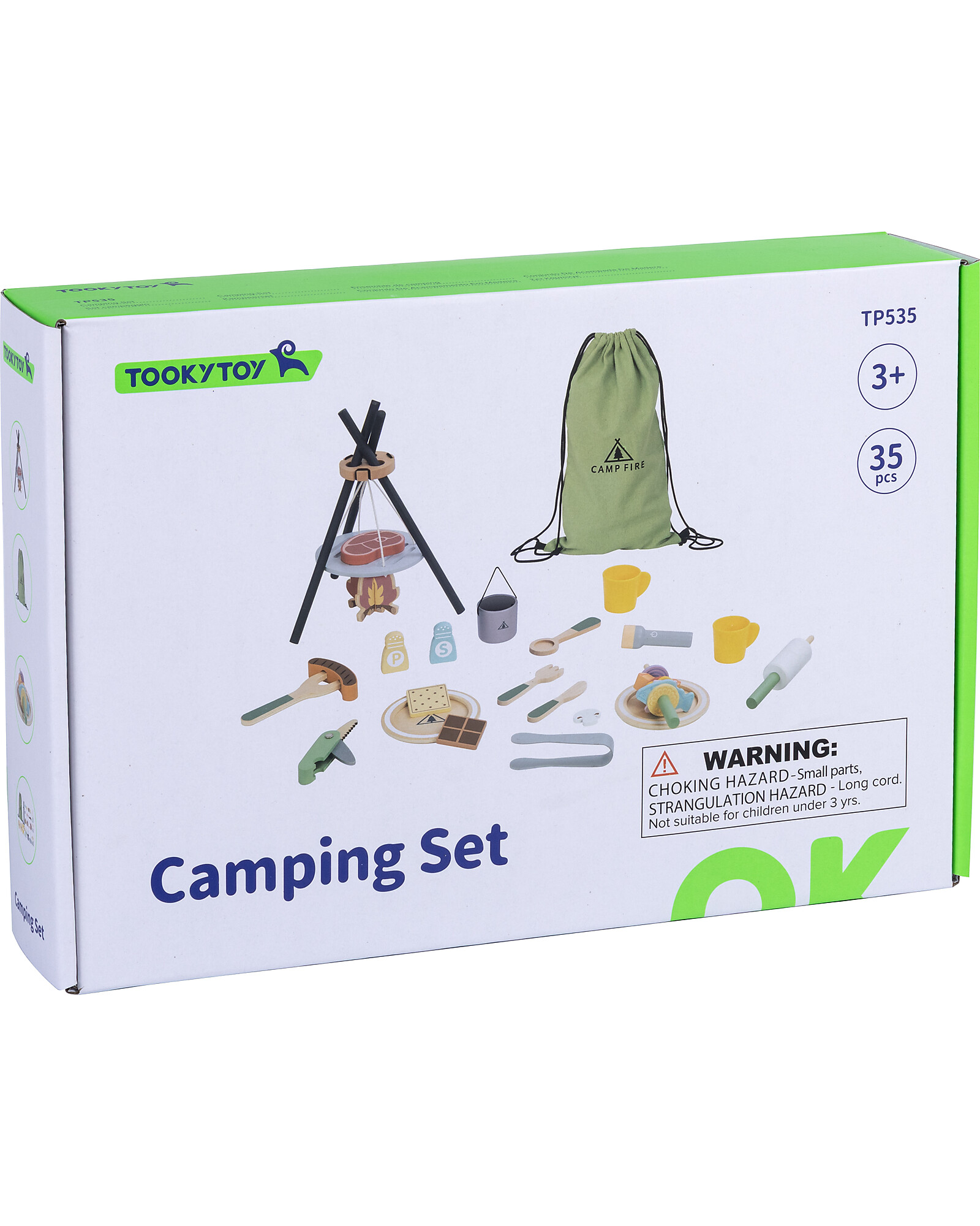 L’avventura nei boschi inizia qui! Questo Set da Campeggio in Legno porta i bambini nel cuore della natura: con 35 accessori tra tenda, fornelletto, utensili e provviste, ogni angolo di casa diventa un accampamento da veri esploratori. Il compensato e il legno di ginepro garantiscono robustezza e autenticità. Il design avventuroso stimola il gioco di ruolo all’aperto e la fantasia. Un giocattolo educativo e coinvolgente, perfetto per i piccoli avventurieri!