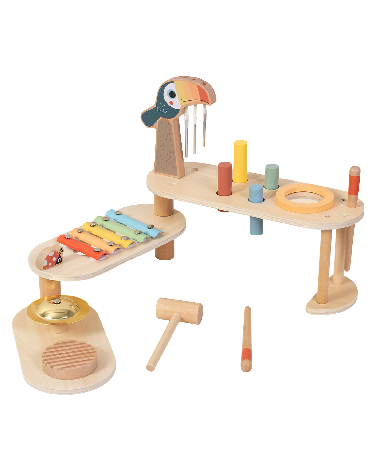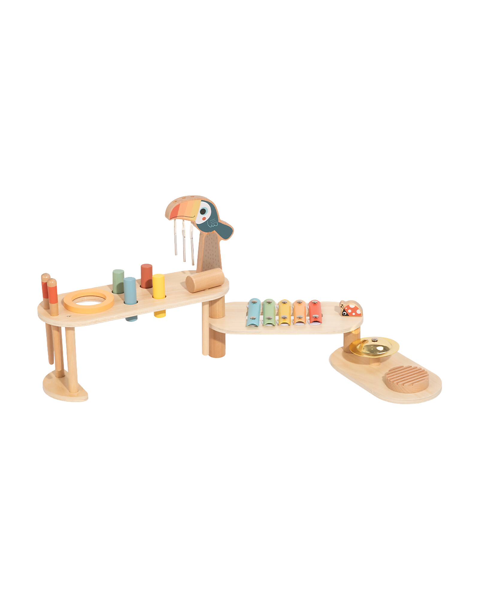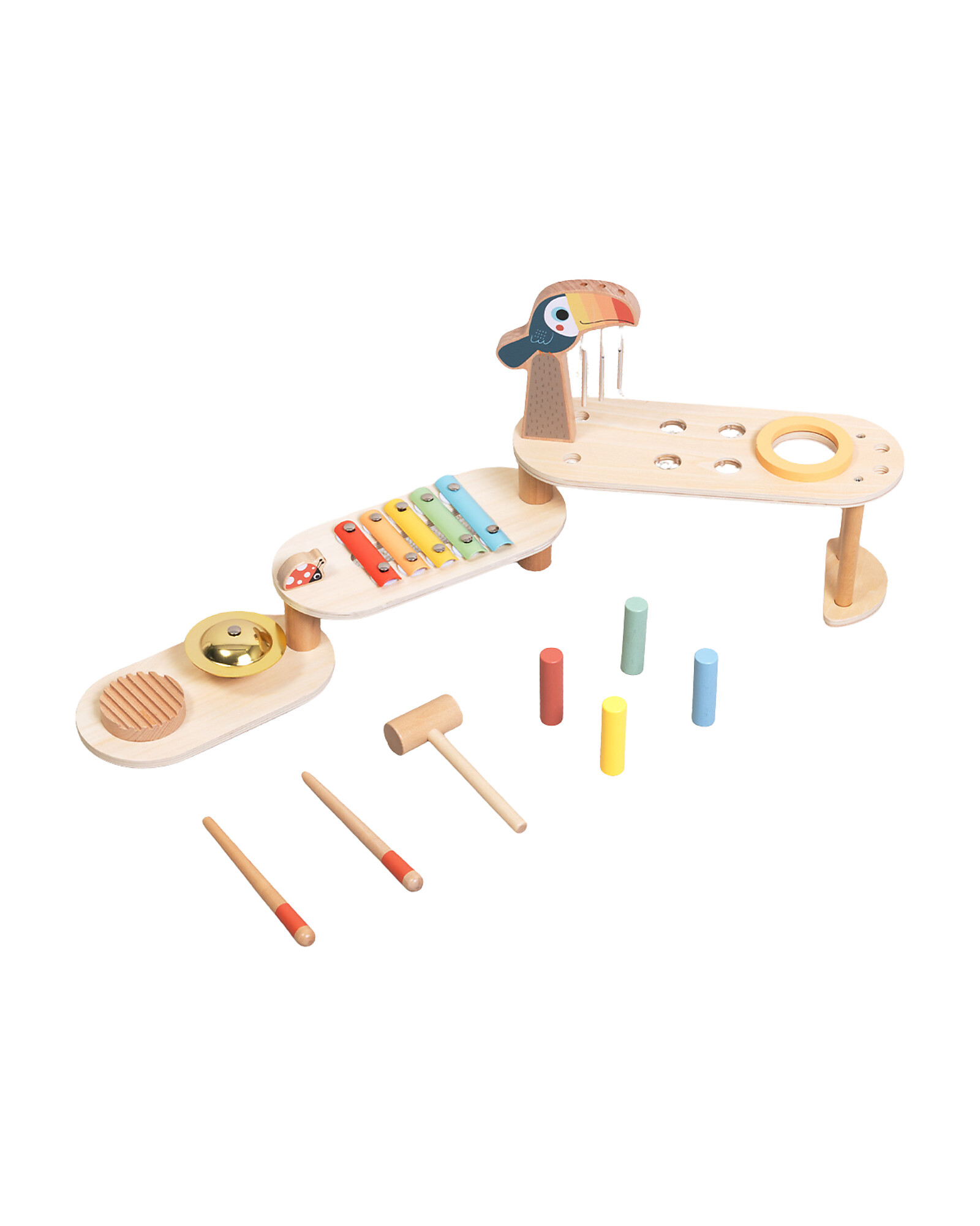 Musica, maestro! Questo Set Musicale Ripieghevole in Legno trasforma i bambini in piccoli musicisti: gli strumenti in legno naturale e metallo producono suoni autentici e melodiosi, stimolando l’educazione musicale e la creatività ritmica. Il design ripieghevole lo rende facile da riporre e portare ovunque. La struttura in compensato, MDF e legno di ginepro garantisce qualità e durata. Un giocattolo musicale completo, perfetto per i piccoli musicisti da 3 anni!