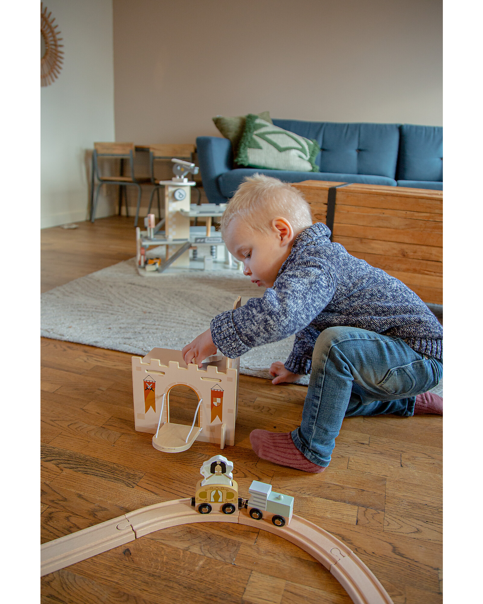 Trasforma la pista del tuo bambino in un mondo fantastico con l’Estensione per Pista Trenino - Fantasy, pensata per stimolare l’immaginazione e il gioco creativo a partire dai 24 mesi. Questo set in legno di alta qualità include tutto il necessario per dare vita a un'avventura preistorica ricca di sorprese: 1 locomotiva, 1 carrozza ferroviaria, 1 vulcano, 1 montagna, 1 albero, 1 ranger e 3 dinosauri, oltre a un set di binari da 16 pezzi composto da 2 curve piccole, 6 curve standard, 2 ponti, 2 supporti per ponti e 4 rettilinei. Ogni elemento è curato nei dettagli per offrire un’esperienza coinvolgente, stimolando la creatività, la motricità fine e la capacità di inventare storie.