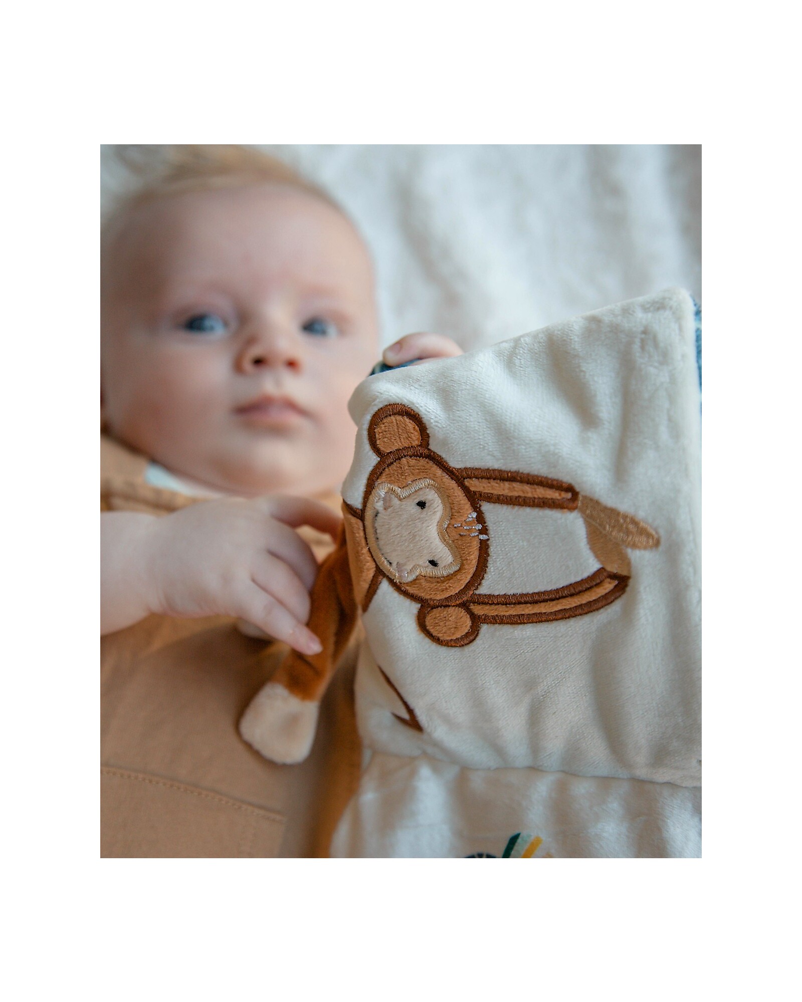 Il Libro Morbido Multiattività - Giungla è un compagno ideale per i neonati fin dalla nascita, pensato per stimolare i sensi e intrattenere il tuo bambino con divertenti attività tattili. Realizzato in poliestere morbidissimo di colore grigio, è perfetto da utilizzare sul passeggino grazie al pratico gancio in velcro che lo rende facile da fissare ovunque. Le sue dimensioni compatte di 16x16 cm lo rendono maneggevole e sicuro per le manine più piccole.