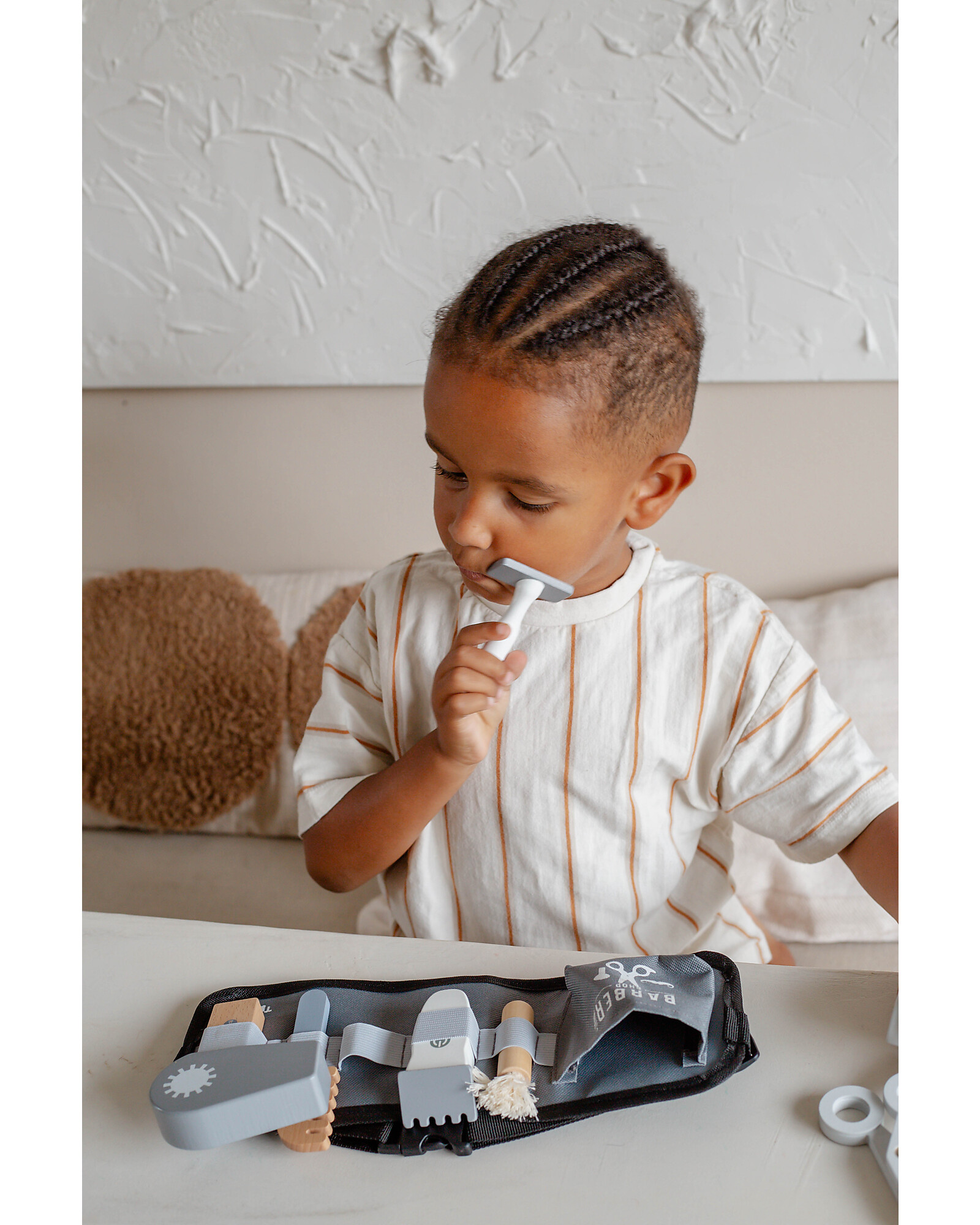 Il Set Barbiere in Legno è il gioco perfetto per stimolare l’immaginazione e il gioco simbolico dei più piccoli! Realizzato in legno di alta qualità e dipinto con colori ad acqua atossici, questo set permette ai bambini di imitare i gesti del barbiere in totale sicurezza, creando storie e situazioni divertenti.Ideale per il gioco di ruolo, favorisce lo sviluppo della creatività, della coordinazione manuale e delle abilità sociali. Il design curato e i colori vivaci rendono ogni esperienza di gioco ancora più coinvolgente, trasformando il momento del gioco in un’avventura educativa e divertente.