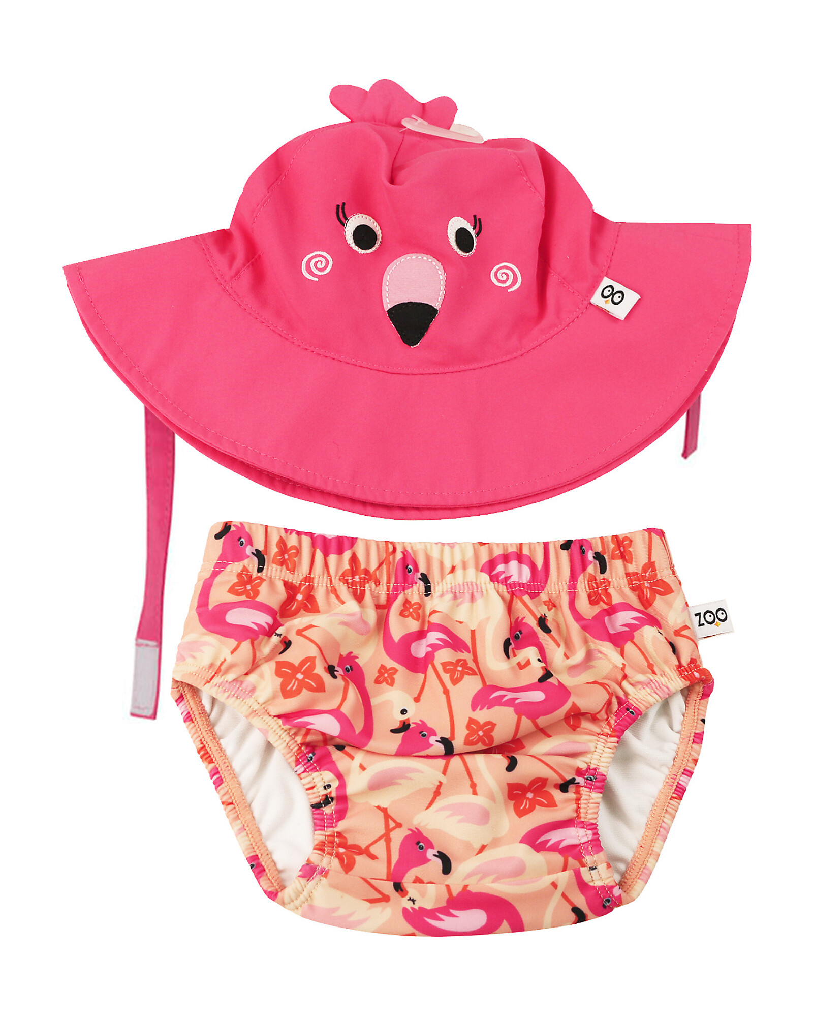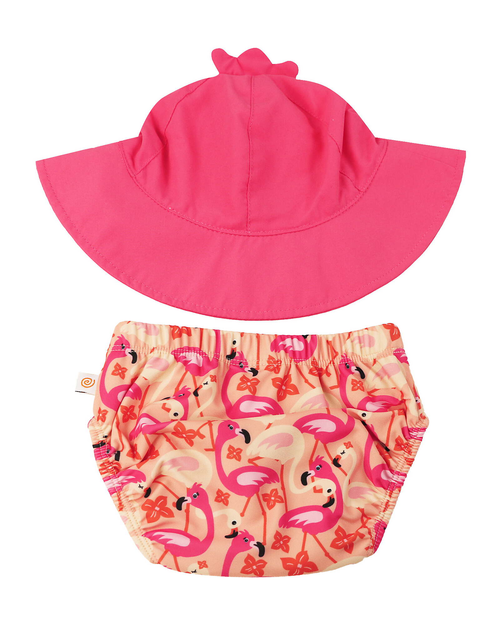 Set Baby Costumino Contenitivo + Cappellino - Franny il Fenicottero - UPF 50+ - Nuovo Design